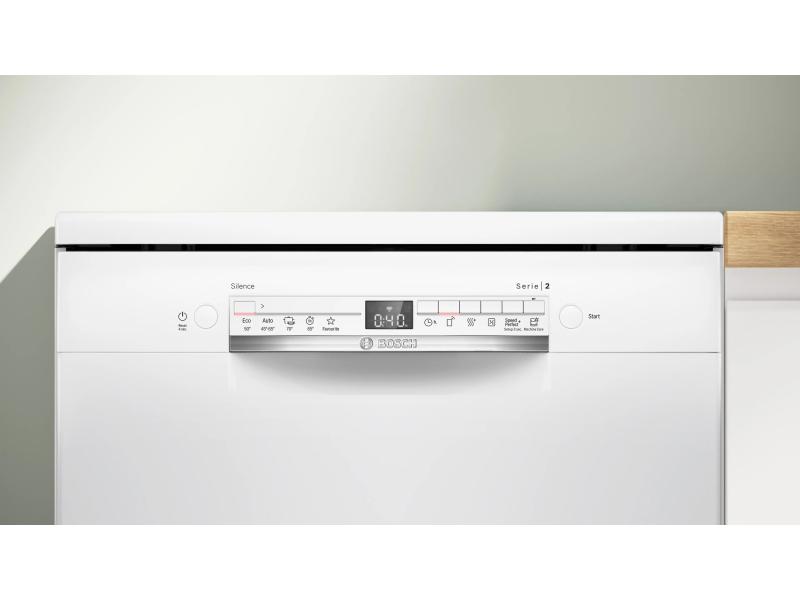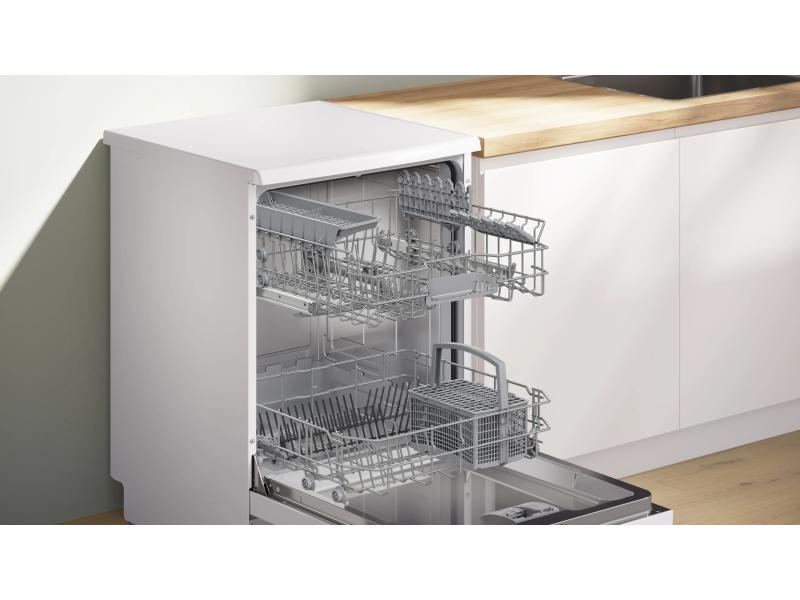 | Ostalo | Karakteristike Tip motora: EcoSilence Drive Potrošnja vode po ciklusu: 9 l Potrošnja električne energije na 100 ciklusa: 74 kWh Trajanje programa: 4:55 h Nivo buke: 46 dB Klasa emisije buke: C Interval odloženog starta: do 24h Način sušenja: Izmjenjivač toplote Sistem korpi: Praktično punjenje sa Vario korpom Funkcije Funkcija Home Connect: Daljinsko praćenje i upravljanje Dodatne funkcije preko aplikacije Home Connect: Higijena Plus, Tišina na zahtev Extra Dry Polovično punjenje VarioSpeed Plus Machine Care Senzor za vodu i količinu posuđa Detektovanje deterdženta Električni panel za zaključavanje AquaStop Programi Eco program Auto 45-65°C Intenzivno 70ºC Quick L Prilagođeni program |