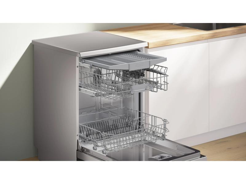 | Ostalo | Karakteristike Tip motora: EcoSilence Drive Potrošnja vode po ciklusu: 9 l Potrošnja električne energije na 100 ciklusa: 75 kWh Trajanje programa: 4:55 h Nivo buke: 46 dB Klasa emisije buke: C Interval odloženog starta: do 24h Način sušenja: Izmjenjivač toplote Sistem korpi: Praktično punjenje sa Vario korpom Funkcije Funkcija Home Connect: Daljinsko praćenje i upravljanje Dodatne funkcije preko aplikacije Home Connect: Higijena Plus, Tišina na zahtev Extra Dry Polovično punjenje VarioSpeed Plus Machine Care Senzor za vodu i količinu posuđa Detektovanje deterdženta Električni panel za zaključavanje AquaStop Programi Eco program Auto 45-65°C Intenzivno 70ºC Quick L Prilagođeni program |