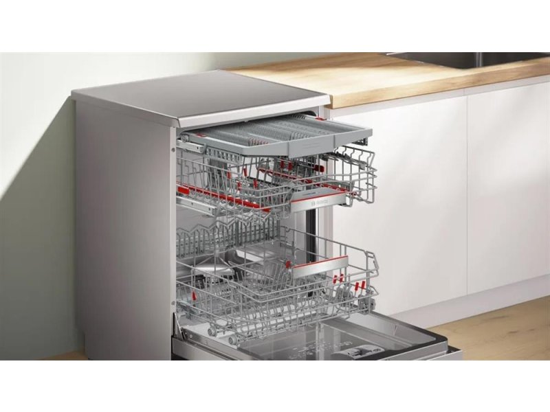 | Ostalo | Karakteristike Tip motora: EcoSilence Drive Potrošnja vode po ciklusu: 9.5 l Potrošnja električne energije na 100 ciklusa: 54 kWh Trajanje programa: 4h 55 min Nivo buke: 42 dB Klasa emisije buke: B Interval odloženog starta: do 24h Način sušenja: Zeolith, EfficientDry i toplotni menjač Sistem korpi: Maksimalna fleksibilnost sa Max Flex Pro korpom Funkcije Funkcija Home Connect: Daljinsko praćenje i upravljanje Dodatne funkcije preko aplikacije Home Connect: Tišina na zahtev HygienePlus varioSpeed Plus Machine Care Tehnologija za zaštitu stakla Senzor za vodu i količinu posuđa Detektovanje deterdženta AquaStop Programi Eco program Auto 45-65°C Inteligentni Intenzivno 70ºC Kratko 60°C Staklo 40°C Tih rad Prilagođeni program |