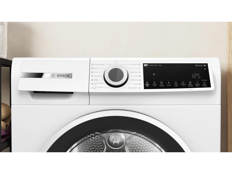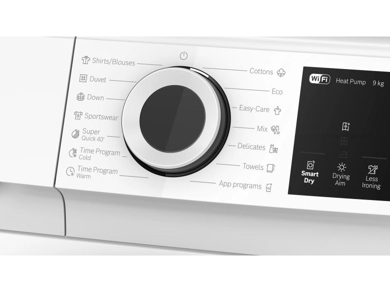 | Ostalo | Home Connect daljinsko praćenje i kontrola Dodatni programi preko aplikacije AutoDry tehnologija Smart Dry Funkcija vremenskog odlaganja Prikaz progresa sušenja Prikaz zasićenosti filtera Prikaz "Isprazni posudu" Biranje temperature sušenja Naknadno dodavanje veša tokom ciklusa Antivibracioni zidovi Ekstremno tiho |