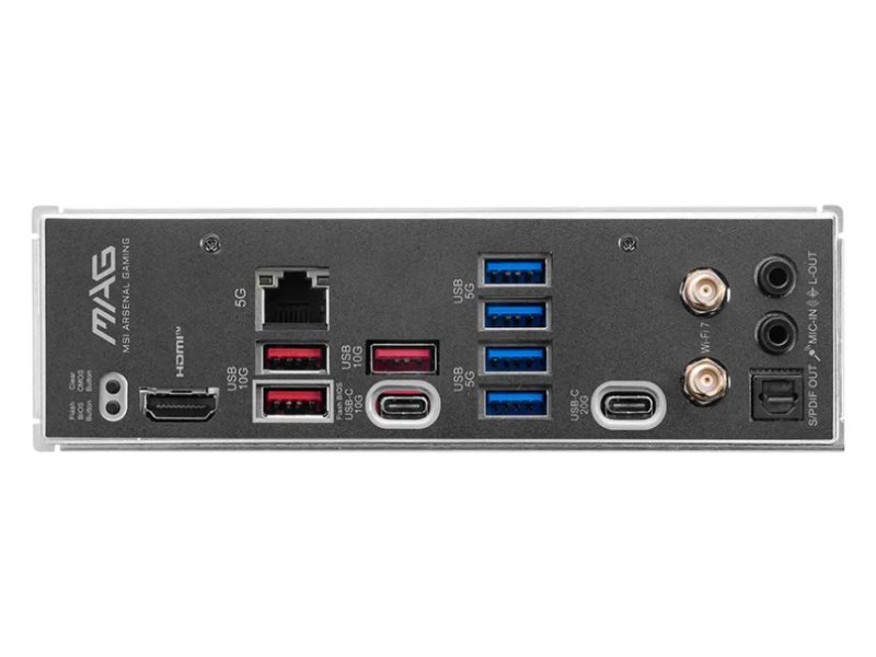 | Ostalo | Skladišni interfejs SATA priključci (ukupno): 4 SATA priključci: 4x SATA 6GB/s Broj M.2 slotova: 2 Podržani M.2 formati: 2x 2260 / 2280 (podrška za PCIe 5.0 x4 mod), 1x 2280 (podrška za PCIe 4.0 x2 mod) RAID: RAID 0, RAID 1, RAID 10, RAID 5 Mreža Žična mreža (LAN): 5GBase-T (Gigabit) Model: Realtek 8126VB Wi-Fi standard: Wi-Fi 7 Bluetooth verzija: 5.4 Priključci na zadnjem panelu Broj HDMI priključaka: 1 HDMI priključci: 1x HDMI 2.1 Ukupno USB priključaka: 9 Ukupno USB-C priključaka: 2 USB-A priključci: 4x USB 5Gbps (3.2 Gen 1), 3x USB 10Gbps (3.2 Gen 2) USB-C priključci: 1x USB 10Gbps (3.2 Gen 2), 1x USB 20Gbps (3.2 Gen 2x2) RJ-45 (LAN): 1 Audio: 2x 3.5mm Ostali priključci: BIOS Flashback taster, 1x Clear CMOS dugme, Wi-Fi / Bluetooth Unutrašnji priključci Naponski priključci: 1x Power Connector(ATX_PWR), 1x Power Connector(PCIE_PWR 8pin), 2x Power Connector(CPU_PWR) USB-A: 2 x podrška za 1 USB 5Gbps port, 4 x podrška za 1 USB 5Gbps port USB-C: 1 x podrška za 1 USB 10Gbps port Audio: 1x Front panel audio Ostali priključci: 2x Front Panel (JFP), 1x Chassis Intrusion (JCI), 1x TPM pin header(Support TPM 2.0), 1x CPU Fan, 1x Combo Fan (Pump_Sys Fan), 3x Addressable V2 RGB LED connector (JARGB_V2), 1x EZ Memory Detection LED, 4x System Fan, 1x EZ Conn-header (JAF_1), 1x RGB LED connector(JRGB), 1x Tuning Controller connector(JDASH), 4x EZ Debug LED Napomena: Za iskorišćavanje određenih internih konektora potrebni su dodatni bracket-i ili priključci na kućištu Ostale karakteristike Podržane tehnologije: Core Boost, Extended Heatsink Design, EZ M.2 Shield Frozr II, Audio Boost 5, Lightning Gen 5, EZ PCIe Release Fizičke karakteristike Dimenzije: 243.84 x 243.84 mm Pakovanje: SATA kabl, EZ M.2 clip II Remover, 1x EZ Wi-Fi Antenna, M.2 šrafovi, Stikeri za kabl, EZ Conn kabl (V1), 2x EZ M.2 clip II, EZ Front Panel kabl |