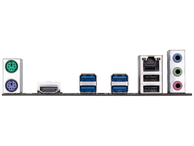| I/O konektori na zadnjoj strani | 1 x PS/2 mouse port 1 x PS/2 Keyboard port 1 x HDMI port 4 x USB 3.1 Gen 1 ports 2 x USB 2.0/1.1 ports 1 x RJ-45 port 3 x audio jacks (Line In, Line Out, Mic In) |
