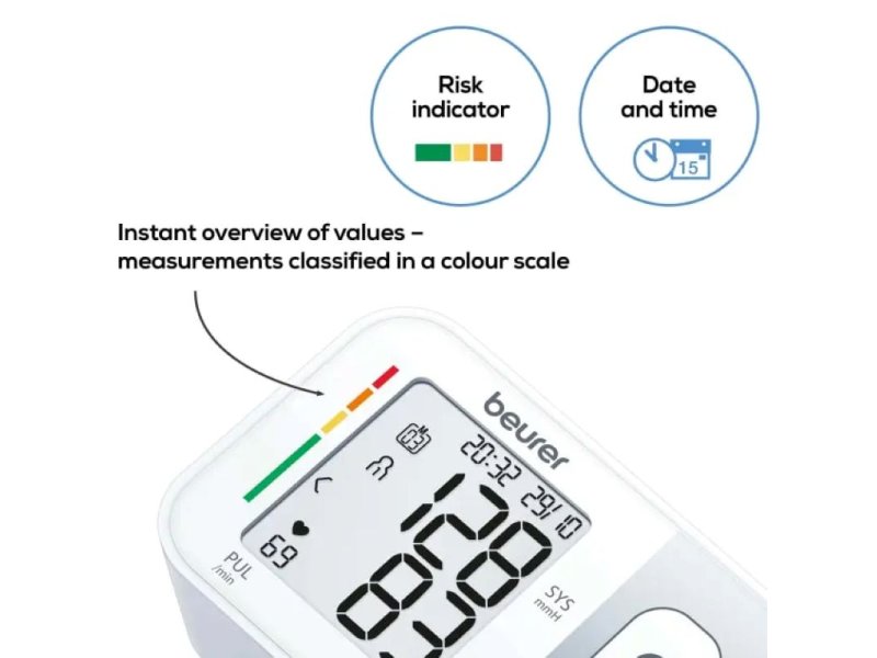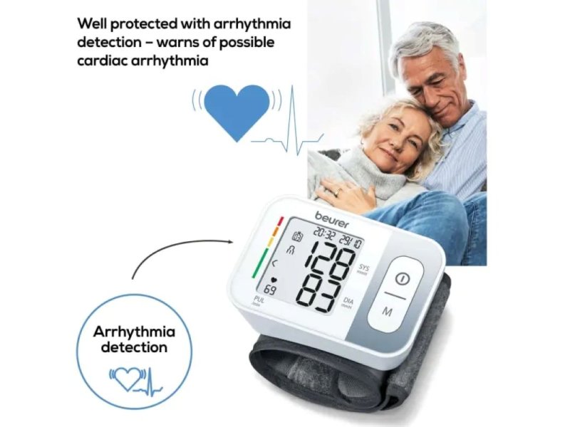Opis | Jednostavan i lak za upotrebu – ono po čemu se ističu naši ručni aparati za merenje krvnog pritiska. Ovi praktični uređaji su se pokazali kao posebno pouzdani saputnici u pokretu, što znači da možete redovno pratiti svoj krvni pritisak. Potpuno automatsko merenje krvnog pritiska i pulsa na zglobu Prosek svih sačuvanih izmerenih vrednosti Prosek jutarnjeg i večernjeg krvnog pritiska za poslednjih 7 dana jasan prikaz 2 k 60 memorijskih prostora indikator rizika Otkrivanje aritmije Medicinski aparat Za obim zgloba od 14,0 do 19,5 cm Datum i vreme/automatsko isključivanje Poruka o netačnoj upotrebi indikator niske baterije kutija