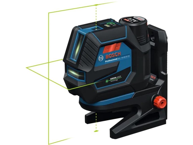 Za trenutno pokretanje, režim laserskog prijemnika GCL 12V-50-22 CG je uvek aktiviran. Uz opciono laserski prijemnik LR 7 Professional, radni opseg se može proširiti do 50 metara. Zelene laserske linije i tačke pružaju do četiri puta bolju vidljivost od crvenih linija, obezbeđujući da rad uvek bude savršen. Precizno pozicioniranje laserskih linija oko vertikalnih tačaka se može lako postići uz držač RM 20 Professional.