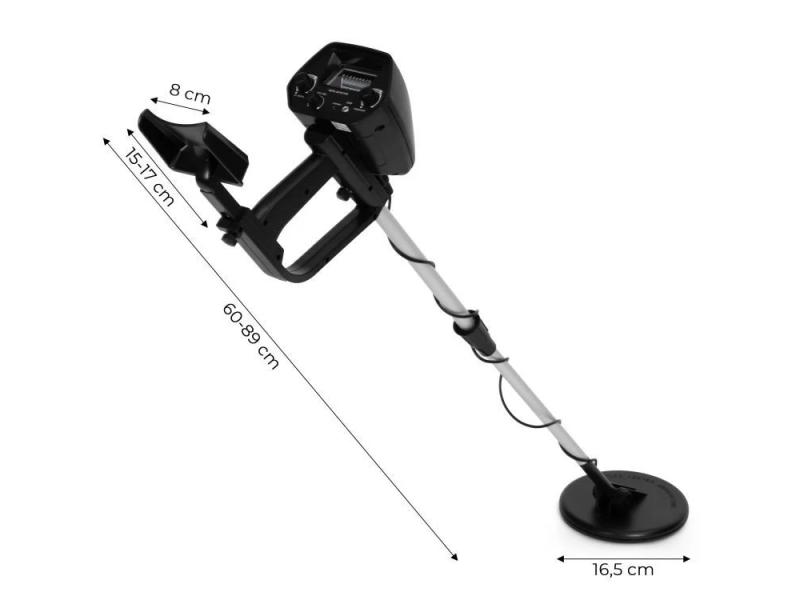Metal detektor je namenjen za pretragu različitih terena - idealan je za istraživanje na plažama, u šumama, u blizini starih objekata i na poljima. Opremljen je analognim pokazivačem koji reaguje pomeranjem kazaljke prilikom detekcije metala, kao i sa dva režima rada (ALL METAL, DISC), što omogućava efikasno filtriranje neželjenih predmeta. Vodootporna sonda za pretragu prečnika 16.5 cm omogućava rad na vlažnom tlu. Podesiva drška (60-89 cm), neklizajuća ručka, kao i vibracioni i zvučni signali koji ukazuju na pronalazak cilja obezbeđuju udobno i precizno rukovanje. Mogućnost povezivanja slušalica (3.5 mm priključak) i indikator stanja baterije dodatno povećavaju funkcionalnost uređaja.