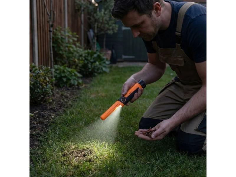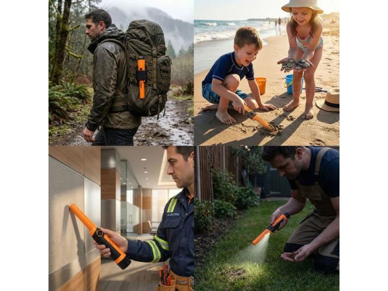 Ručni pinpointer je neizostavan alat za precizno lociranje metala u iskopima, šutu, zidovima, pa čak i pod vodom predstavlja odličnu dopunu terenskom metal detektoru. Zahvaljujući kompaktnom i laganom dizajnu, idealan je za rad na terenu. Statički režim rada omogućava detekciju bez pomeranja uređaja – zvučni i vibracioni signali se automatski aktiviraju pri približavanju meti. Zona detekcije od 360° i funkcija bočnog skeniranja ubrzavaju pretragu zemlje, zidova i drugih teško dostupnih mesta.