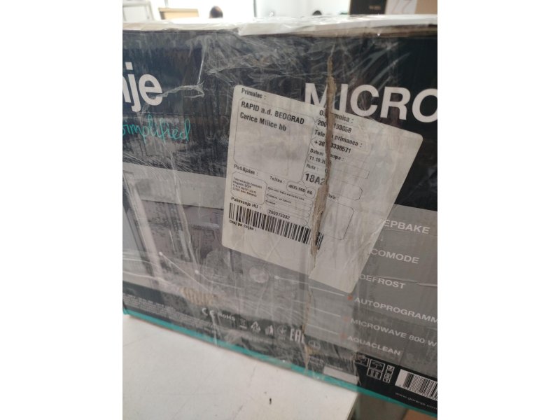 | Ostalo | Zapremina: 20l Broj nivoa snage: 5 Broj programa za odmrzavanje: 1 Broj automatskih programa: 11 Programi kuvanja: Breakfast, Meso, Testenine, Pica, Popcorn, Krompiri Funkcija čuvanja toplote Nivo buke: 60 dB Unutrašnje osvetljenje Child lock, Tajmer, Ekran, Okretni tanjir Dimenzije: 45,1 x 25,7 x 34,3 cm |