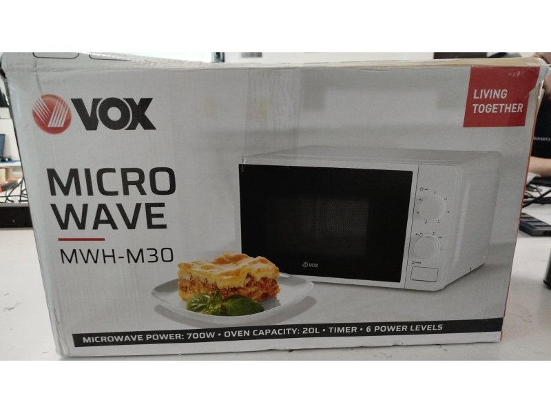 | Ostalo | Kontrola: Mehanička Kapacitet rerne: 20 l 3D distribucija talasa Broj nivoa snage: 5 nivoa snage Signal za kraj programa Zaštita za decu Neto težina: 10 kg Bruto težina: 11 kg Dimenzije uređaja (ŠxVxD): 45.1 x 33.2 x 25.8 cm Dimenzije spakovanog uređaja (ŠxVxD): 49 x 36 x 28.7 cm |