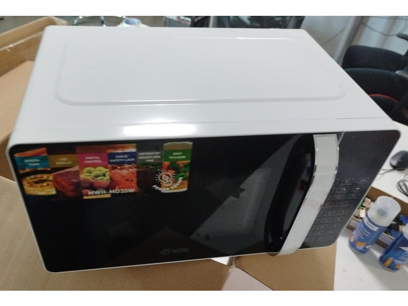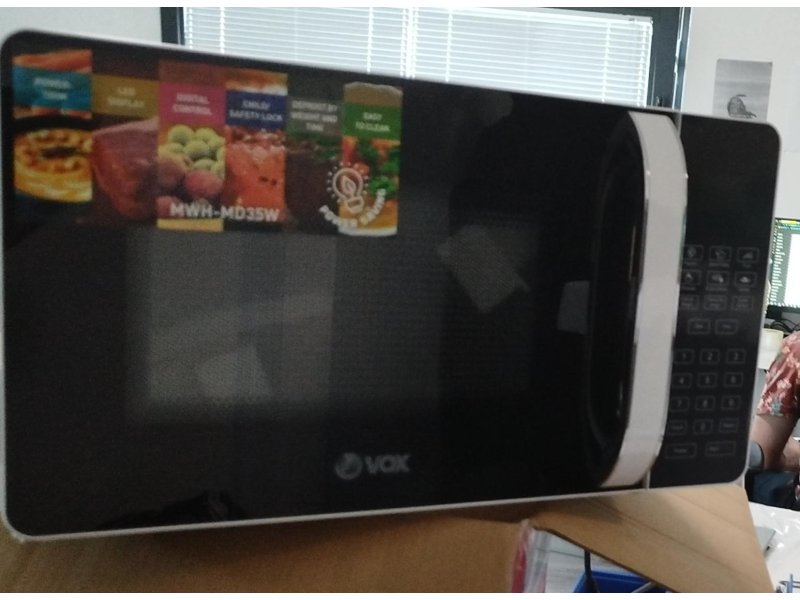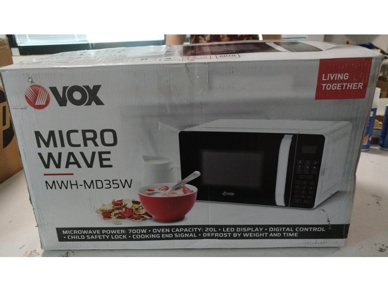 | Ostalo | Kapacitet rerne: 20 l 3D distribucija talasa Kontrola: Digitalna LED Displej: Da Odmrzavanje u zavisnosti od težine porcije: Da Signal za kraj programa: Da Automatski meni: 8 različitih programa Zaštita za decu: Da Neto težina: 10 kg Bruto težina: 11 kg Dimenzije uređaja (ŠxVxD): 45.1 x 34.3 x 25.8 cm Dimenzije spakovanog uređaja (ŠxVxD): 49 x 36 x 28.7 cm |