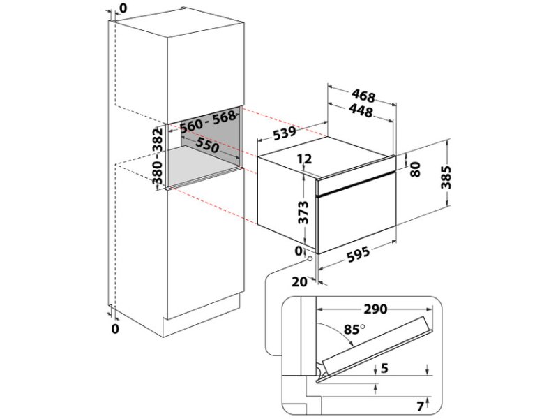 | Dimenzije | Širina proizvoda: 595 mm Visina proizvoda: 385 mm Dubina proizvoda: 468 mm Minimalna visina niše: 380 mm Minimalna širina niše: 556 mm Dubina niše: 550 mm |