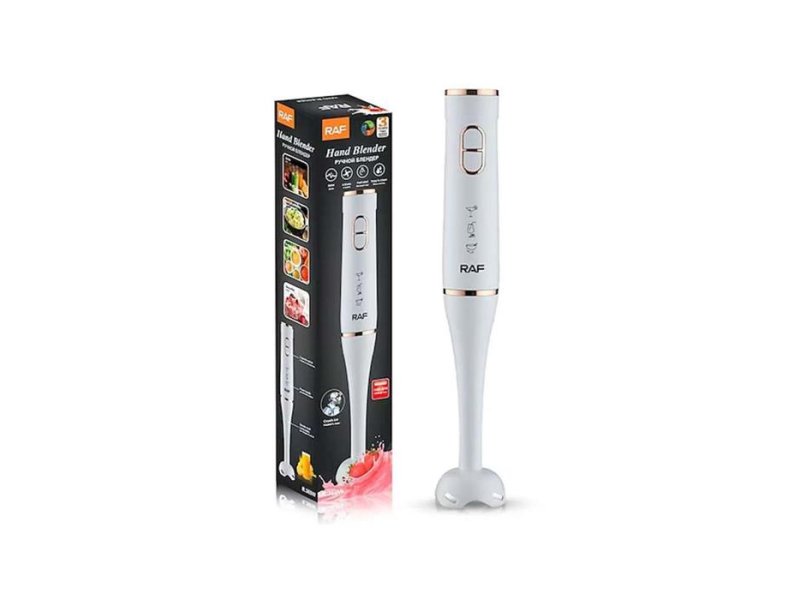 | Karakteristike | Tehničke karakteristike: Snaga: 800 W Broj brzina: 2 Sečivo: Nerđajući čelik Funkcije: Blendiranje, mešanje, usitnjavanje Glavne prednosti: ✔ Snažan motor od 800W za brzo blendiranje ✔ Dve brzine rada za različite vrste pripreme ✔ Oštre inox oštrice za efikasno usitnjavanje ✔ Može lako usitniti i led ✔ Praktičan i jednostavan za korišćenje ✔ Idealan za smutije, supe, sosove i napitke Sadržaj pakovanja: • RAF R.369B štapni mikser • Nastavak sa oštricama |