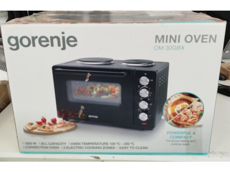 | Karatkeristike | Grejne ploče: 2 Snaga leve ploče za kuvanje: 1000 W Snaga desne ploče za kuvanje: 600W Korisna zapremina rerne: 30 l Cirkulazija toplog vazduha od vrha do dna i nazad |