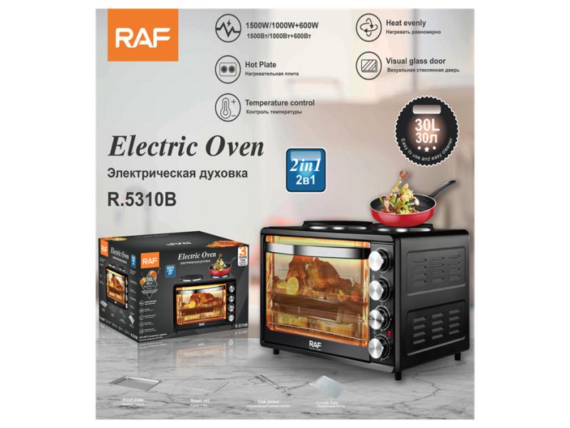 | Karatkeristike | Tehničke karakteristike: Zapremina rerne: 30l Temperatura: 70-230°C Tajmer: 60 min Napon: 220 V Frekvencija: 50 Hz Glavne prednosti: ✔ Mini rerna sa dve ringle ✔ Velika zapremina za pripremu različitih jela ✔ Podesiva temperatura do 230°C ✔ Tajmer do 60 minuta za lakšu kontrolu pečenja ✔ Idealna za kuhinju, stan, vikendicu ili apartman ✔ Praktična za svakodnevno kuvanje i pečenje Sadržaj pakovanja: • RAF R.5310B mini rerna • Pleh za pečenje • Rešetka • Ručka za vađenje pleha • Posuda za mrvice |