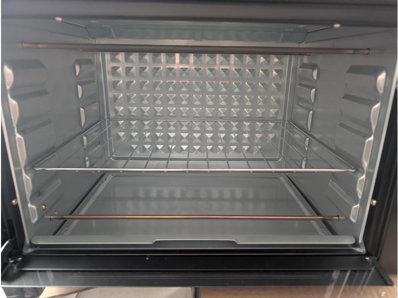 | Karatkeristike | Zapremina: 38l Kontrola temperature: 80-230°C Tajmer: 60 minuta Pribor: 2 pleha, rešetka, držač za pleh Napon i frekvencija: 220V, 60Hz Dužina kabla: 0.9 m |