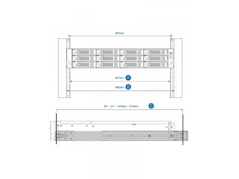 Rail kit for 2U rackmount models: TS-1270U, TS-1269U, TS-870U, TVS-871U ,TVS-1271U, TS-869U, TS-1253U, TS-853U, TVS-471U, TS-463U,TS-463U-RP ,TS-863U, TS-863U-RP