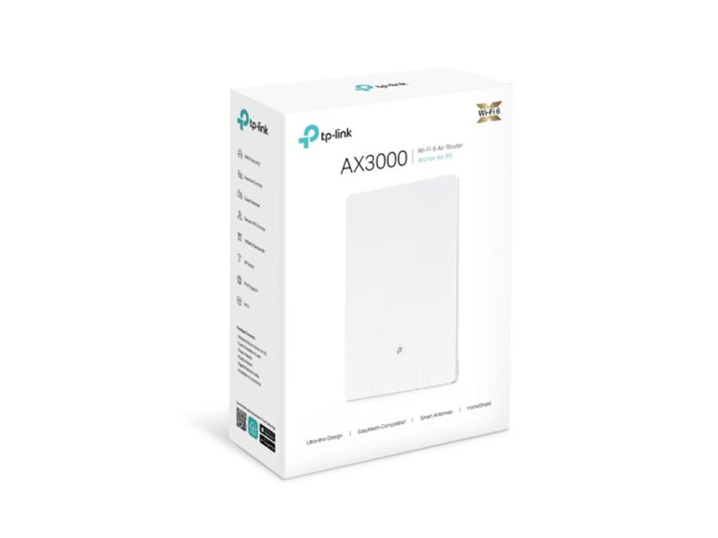| Karakteristike | Dual Band Wi-Fi 6 - 2402 + 574 Mbps MU-MIMO podrška i propusni opseg od 160 MHz Ultra tanak minimalistički dizajn - 210 x 140 x 10,8 mm Pametni antenski sistem za savršenu pokrivenost Pametni roming - Napravite ujedinjenu mrežu sa EasiMesh-om Podrška za WPA3 enkripciju Gigabitni LAN + Gigabitni WAN Podrška za VPN server: PPTP i OpenVPN Sadržaj paketa: Uređaj Zidni nosač Adapter za napajanje Patch kabl |