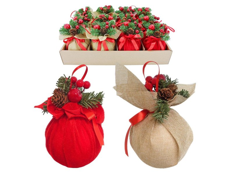 Ukrasite svoje božićno drvce ovim jedinstvenim kuglicama koje izgledaju kao kese za poklone Deda Mraza. Savršen ukras koji će se dobro uklopiti sa ostalim ukrasima na jelki. Karakteristike: Božićna dekoracija - božićne kuglice u obliku poklon kese.