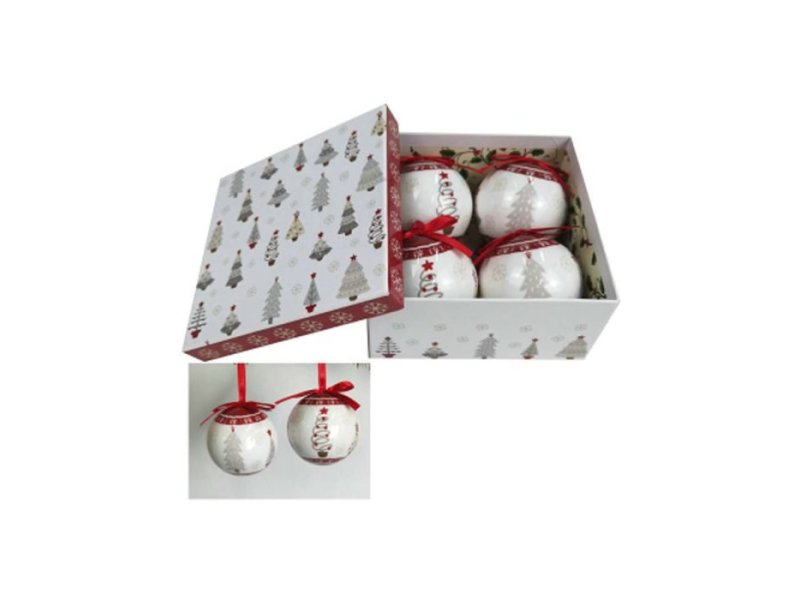 | Karakteristike | U setu: 4kom kuglica. Veličina: 7,5 cm. Boja: snežno bela sa crvenom. Dezen: glatka, sjajna, sa božićnim motivima. Materijal: plastika. U ukrasnoj poklon kutiji. Svake godine se trudimo da jelku ukrasimo što lepše i učinimo je posebnom. Ukrasite svoju jelku ovim prelepim kuglicama u božićnim bojama i božićnim motivima koje će biti savršen ukras na vašoj jelki samostalno ili u kombinaciji sa drugim ukrasima. Osetite čar Božića. |