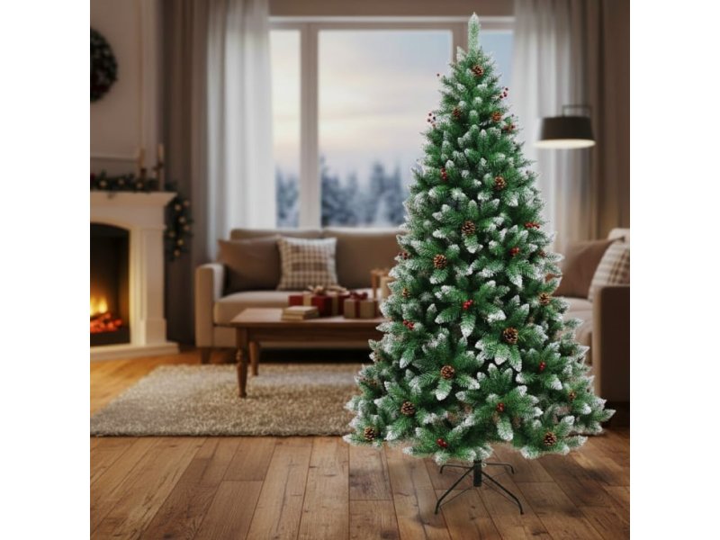 | Karakteristike | Jelka je izrađena od visokokvalitetnih materijala koji verno oponašaju izgled prave zimzelene jelke. Svaka grana pažljivo je oblikovana kako bi postigla prirodan volumen i gustinu. Vrhovi su blago posuti belim slojem koji imitira sneg, dok su šišarke i crvene bobice dodatno raspoređene po granama, pružajući autentičan i elegantan praznični izgled. Jelka dolazi sa čvrstim stalkom koji obezbeđuje potpunu stabilnost, čak i kada se na nju postavi veći broj ukrasa i lampica. Postavljanje je brzo i jednostavno – delovi se lako uklapaju, a grane se mogu raširiti prema želji kako bi se postigla savršena forma i gustina drveta. Dimenzije: • Visina: 150 cm • Prečnik u najširem delu: približno 90 cm |
