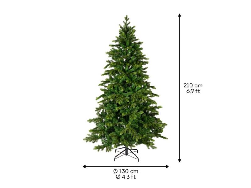 | Karakteristike | Visina jelke: 210 cm Prečnik jelke: 130 cm Prečnik postolja: 51 cm Broj grana: 2140 Broj nosećih grana: 65 Materijal: PE/PVC Postolje: Metalni stalak Boja: Zelena Dimenzije pakovanja: 130 x 31 x 33 cm Težina pakovanja: 13.1 kg |