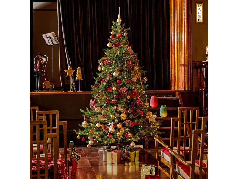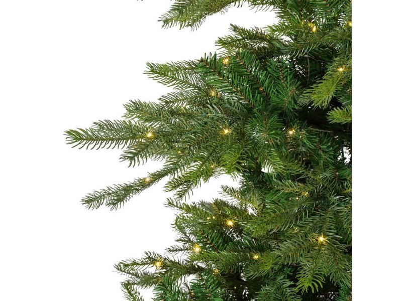 Ova prelepa, bogato osvetljena jelka kombinuje raskošan izgled prave jelke sa praktičnošću unapred postavljenih lampica, pružajući savršen balans između prirodnog izgleda i modernog dizajna.