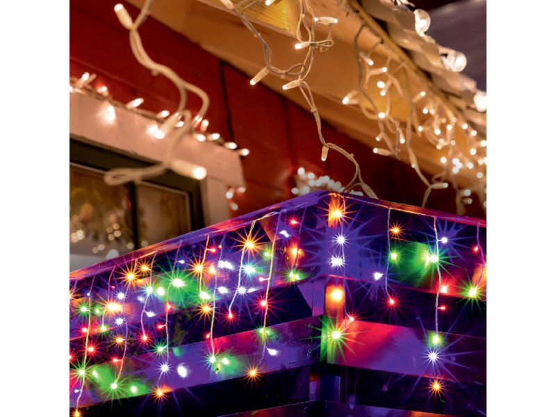 | Karakteristike | Napajanje: 230 V~, preko adaptera (u sklopu) Boja svetlosti: Višebojna Broj LED dioda: 300 Dužina niza LED dioda: 10 m Razmak između LED dioda: 8 cm Razmak između nizova: 17 cm Prekidač: Ne Boja kabela: Bela Upotreba: Unutrašnja i spoljna Tajmer: 6 h ON / 18 h OFF, ciklično Ostale napomene: 8 programa |