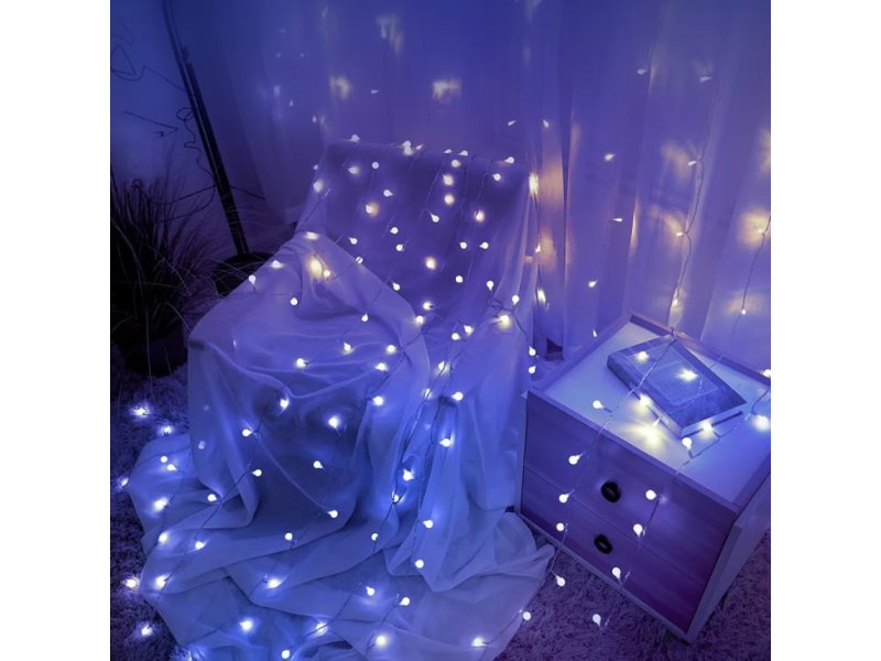 Niz je dug 10 metara, sa zelenim kablom na kojem se nalazi 100 LED‑ova hlađene bele boje (oko 10 000 K) raspoređenih na svakih 10 cm. Dodatni kabl od 3 metra sa EU standard utikačem daje ukupnu dužinu od 13 metara. Sa IP44 zaštitom od prašine i vode, može da se koristi i unutra i spolja — podnosi prskanje vode.