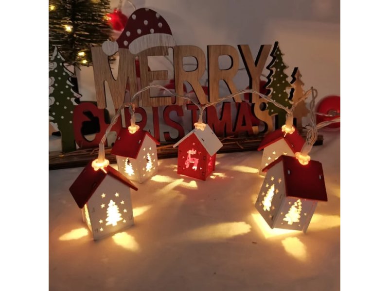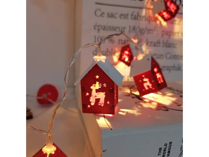 Proizvod je dug 120 cm, i ima 10 LED dioda. Kućice‑sijalice se nalaze na svakih 10 cm. Žica je povezana sa napajanjem preko kabla od 30 cm koji vodi do posude za baterije, a za rad su potrebne 2 AA baterije. Sa kvalitetnim i izdržljivim baterijama, dekoracija može da traje i do 3 dana neprekidnog rada.