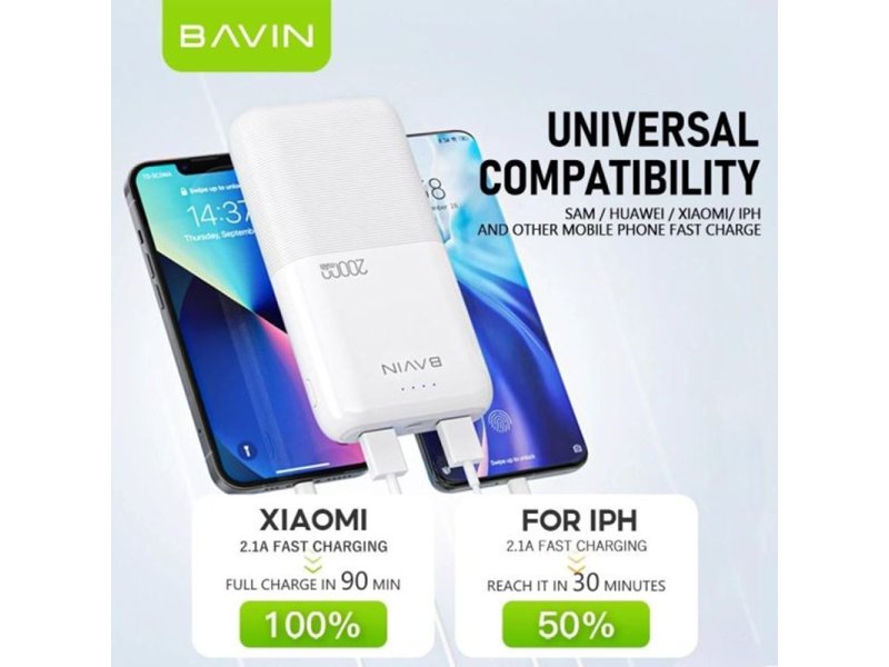 Bavin Power Bank 20000mAh, bela
