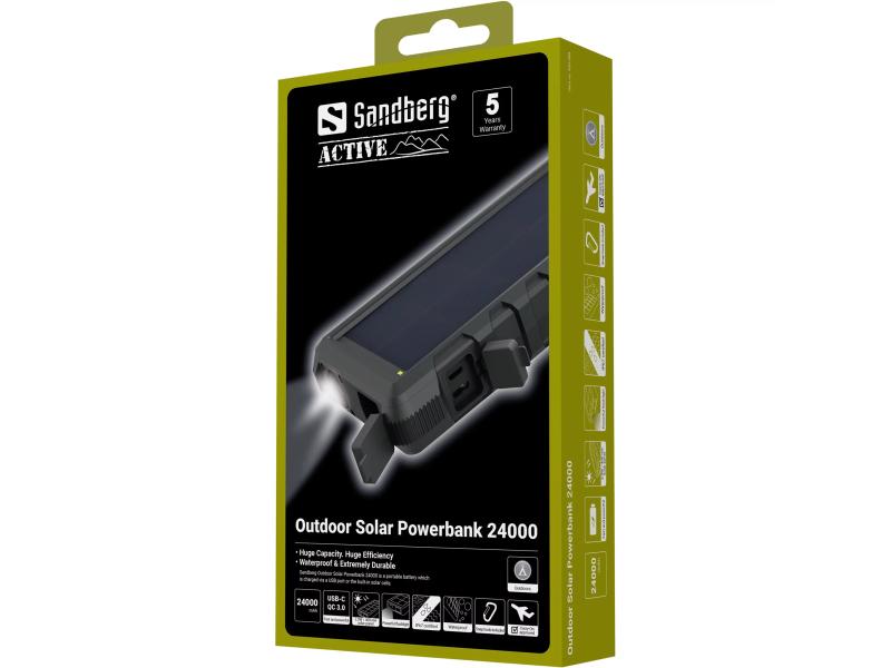 | Ostalo | Kućište otporno na prašinu, udarce i vodu IP67 Kapacitet: 24000 mAh / 88,8 Wh Tip baterije: Litijum-jonska Mikro USB ulaz: 5V/2A, 9V/2A Podržava istovremeno punjenje preko Mikro USB-a i USB-C USB-C ulaz: 5V/3A, 9V/2A PD18W USB-C izlaz: 5V/3A, 9V/2,2A, 12V/1,67A PD20W USB-A izlazi: 5V/3A, 9V/2A, 12V/1,5A, FCP 9V/2,5A, 22,5W Konektori: 1 x Mikro USB ženski, 2 x USB A ženski, 1 x USB-C Solarni panel: 2,0 W / 400 mA 4 LED svetla indikatora baterije 1 baterijska lampa Dimenzije: 180 x 89 x 30 mm Težina: 553 g Temperatura punjenja: 0~45℃ Temperatura pražnjenja: -20~60℃ Podržava napajanje kroz barijeru Vreme punjenja na suncu: 53 sata Vreme punjenja preko USB 1A: 20 sati |