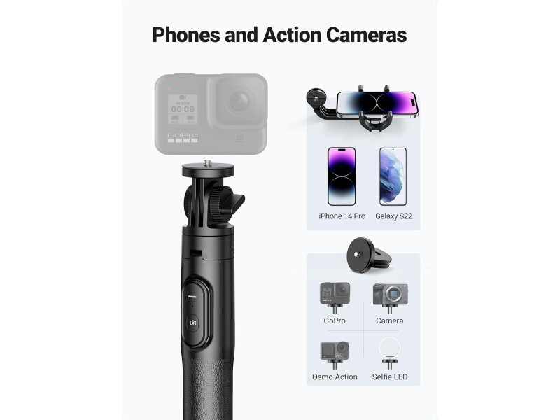 | Ostalo | Ovaj selfi štap je dizajniran za razne primene. Njegovo originalno i proširivo stanje omogućava vam da pravite selfije ili grupne fotografije sa porodicom i prijateljima. Pored toga, njegov režim stativa oslobađa vaše ruke za snimanje video zapisa ili prenose uživo kada putujete sami ili ste na poslu. Ovaj selfi štap sa stativom opremljen je stabilnim Bluetooth V5.0, koji vam omogućava da pravite fotografije/video zapise sa udaljenosti od 10M bez brige o prekidima veze. Zahvaljujući bateriji CR1632/120mAh, moći ćete da napravite 20.000 pojedinačnih fotografija i uživate u boljem iskustvu bez muke sa čestim pražnjenjem baterije. Proširiva dužina i podesiv ugao: Ovaj selfi štap dostiže dužinu od oko 150 cm kada je proširen, tako da selfiji ili grupne fotografije nisu problem. Sa rotacijom od 360°, bićete zadovoljni svakim uglom. Široka kompatibilnost: Sa držačem koji ima opseg rastezanja od 5.8-8.2 cm (telefon + futrola), ovaj unapređeni stativ za telefon odgovara pametnim telefonima od 4.7-6.1 inča sa iOS (5.0 i noviji) i Android (4.0 i noviji), kompatibilan sa iPhone serijom, Galaxy serijom, Redmi serijom, HUAWEI serijom, GoPro serijom, itd. |