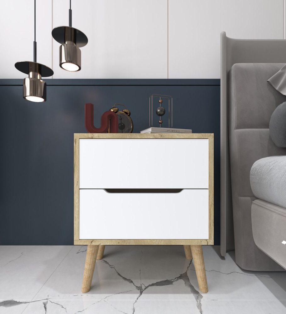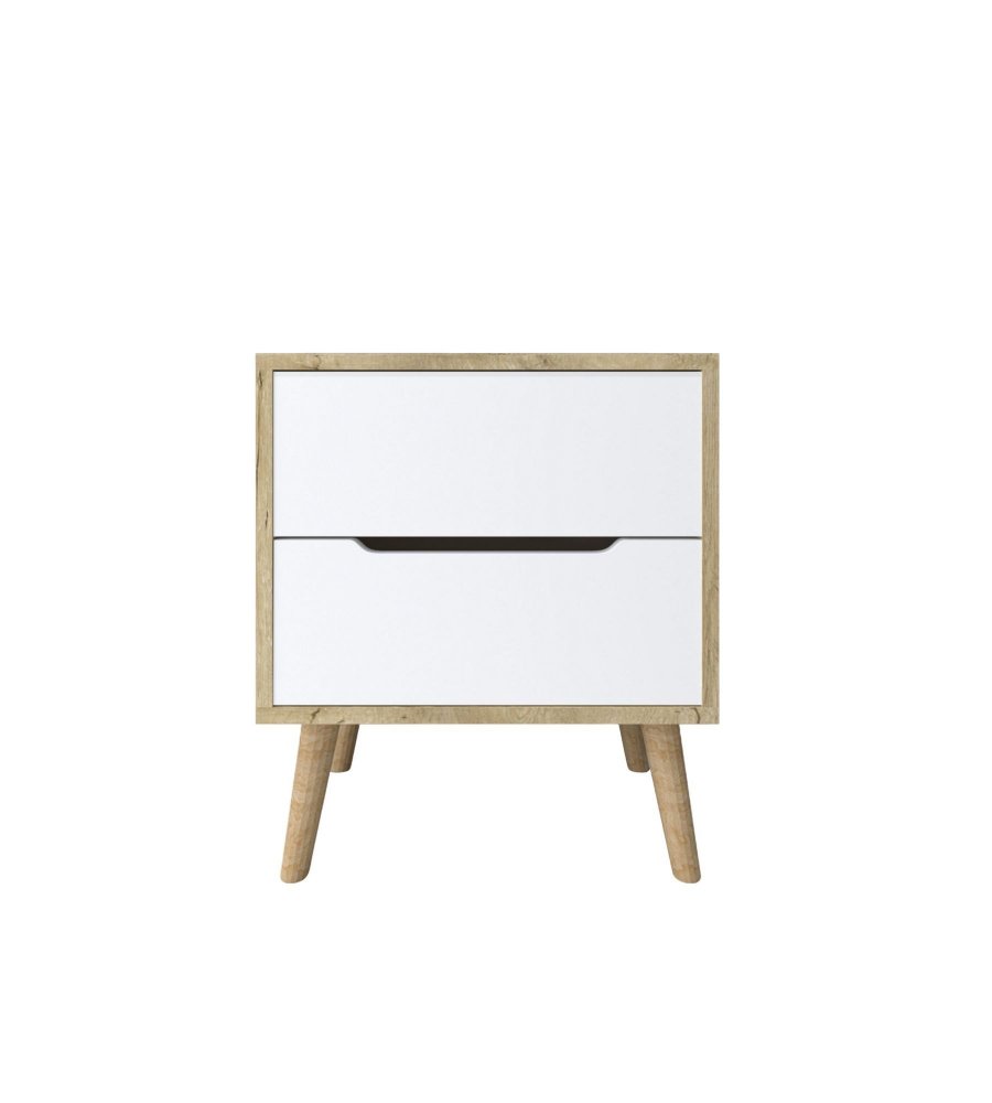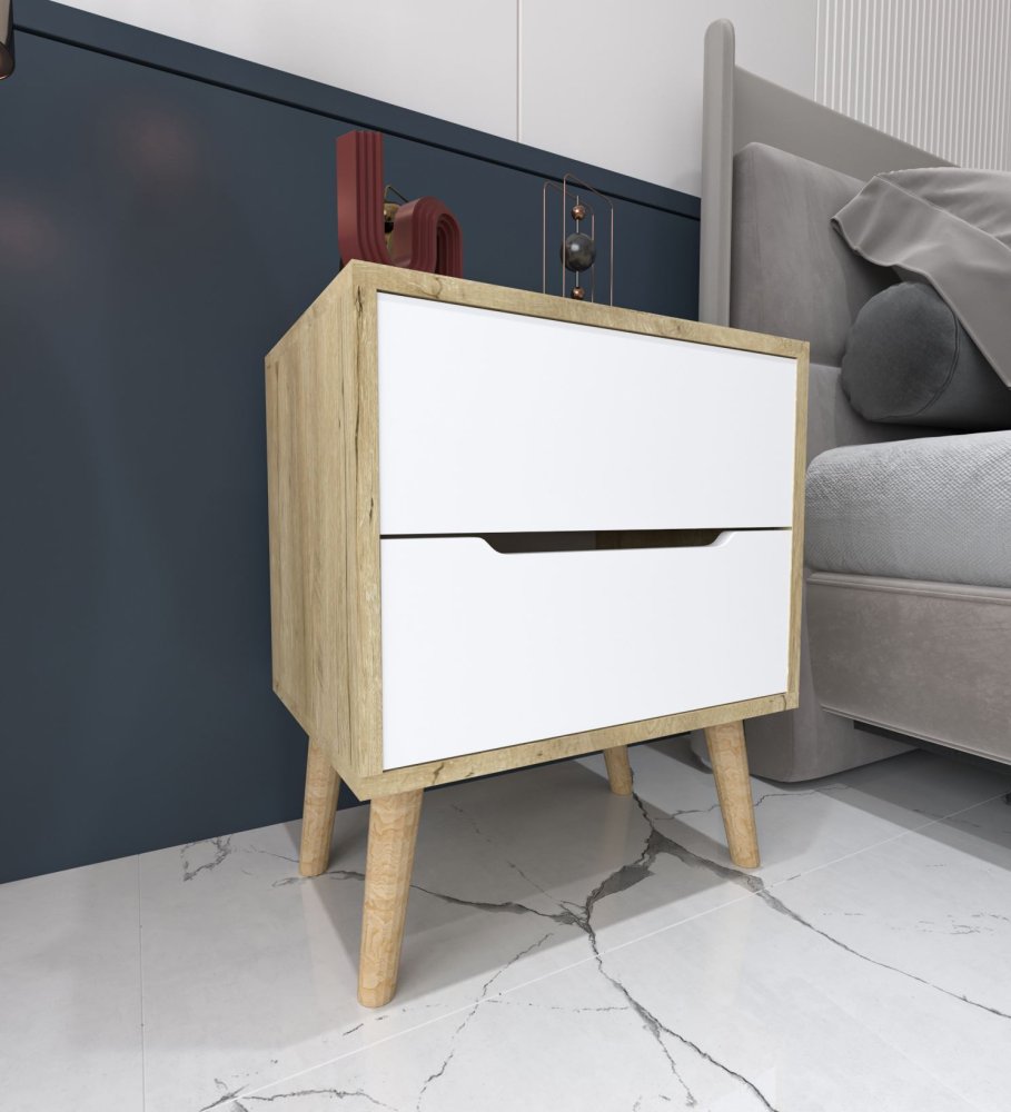 Specifikacija | Noćni ormarić Flora Safir hrast Bela 100% Melaminska obloga iverica Drvene nogare (20 cm) Nosivost police: 30 kg To je rastavljen proizvod. Širina: 50 cm Visina: 60 cm Dubina: 44 cm |