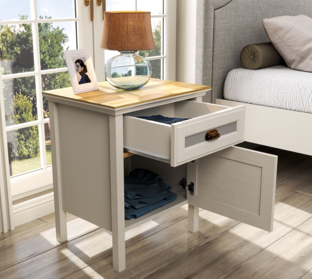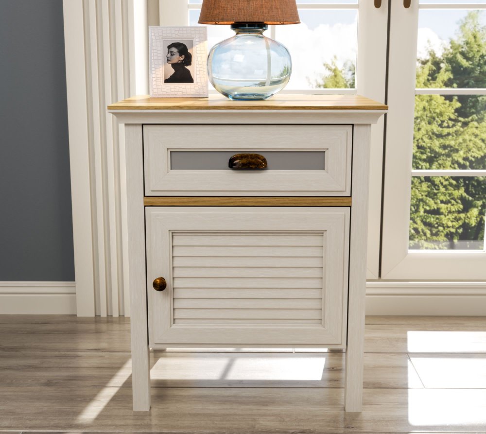 Noćni ormarić FRN 21015 – Krem / Hrast / Siva
