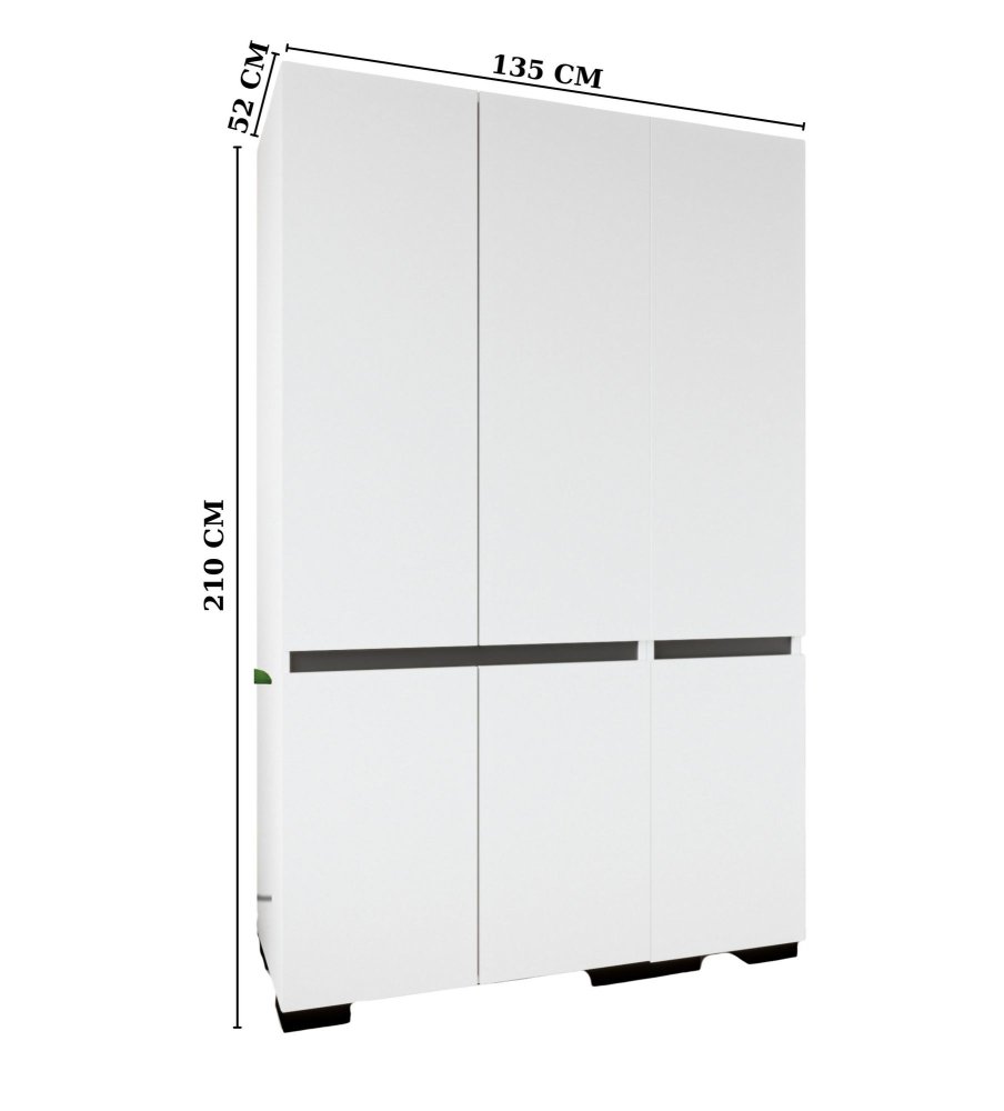 Specifikacija | Ormar Floransa 135 White Anthracite 100% Melaminska obloga iverica Plastične nogare (3 cm) Nosivost police: 30 kg To je rastavljen proizvod. Širina: 135 cm Visina: 210 cm Dubina: 52 cm Brojne police Može se pričvrstiti na zid |