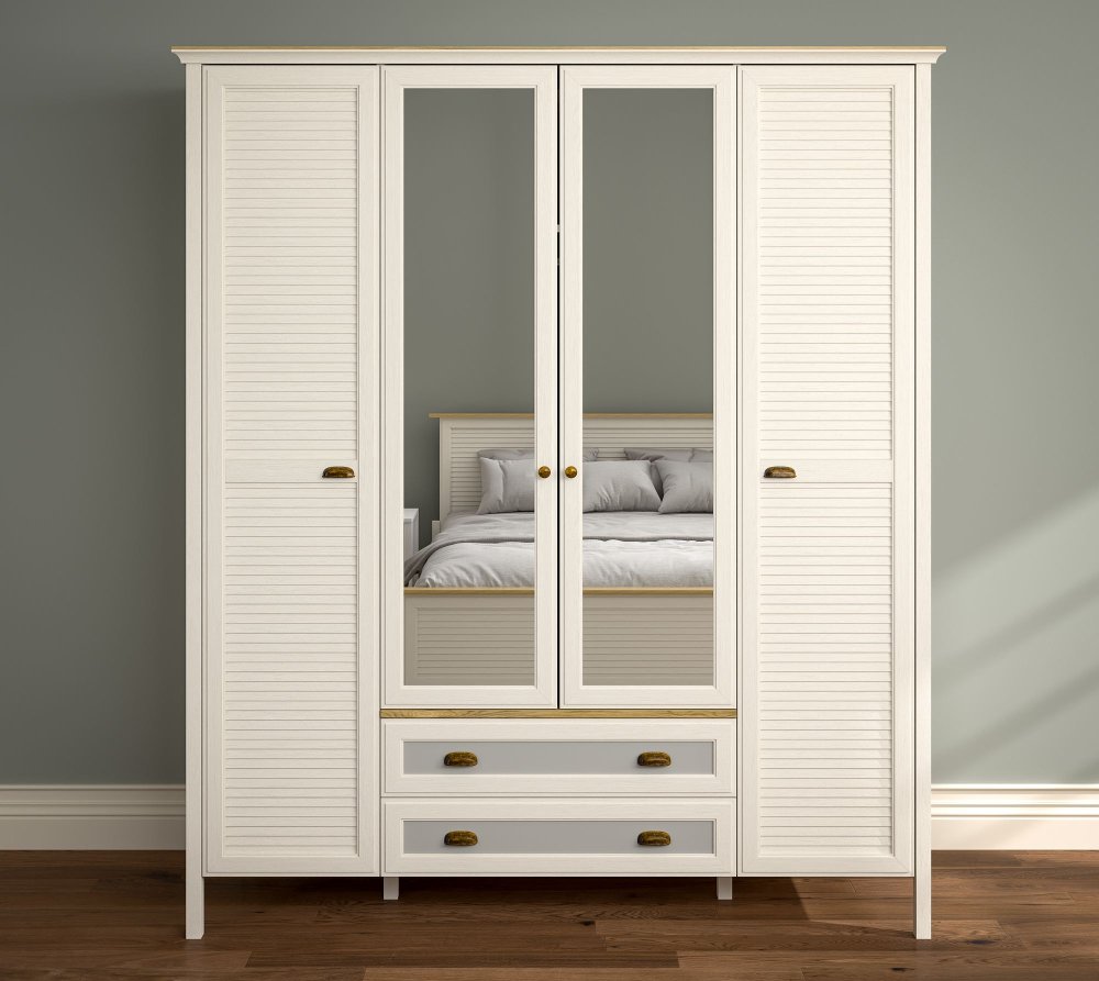 Specifikacija | Ormar u krem - hrast - sivoj boji FRN 21004 100% Melaminska obloga iverica Vrata: 100% MDF Debljina: 18 mm Rubna traka: 0,8 mm Širina: 186,3 cm Visina: 215,9 cm Dubina: 61,1 cm Visina nogare: 15 cm MDF profilne nogare Metalne ručke Brojne police Može se pričvrstiti na zid |