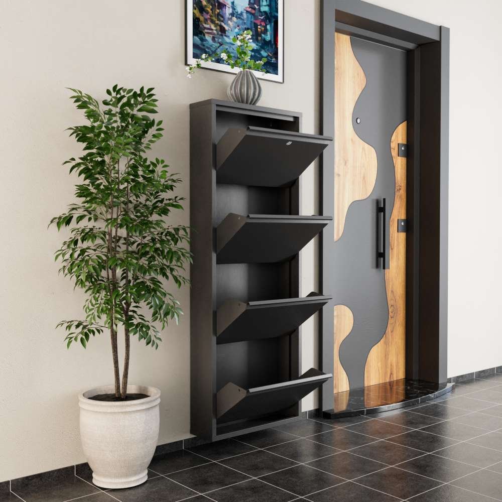 HANAH HOME Ormar za cipele Locking 4 Piece Metal Anthracite