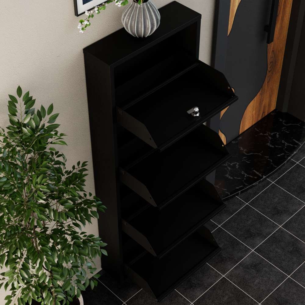 HANAH HOME Ormar za cipele Locking 4 Piece Metal Black