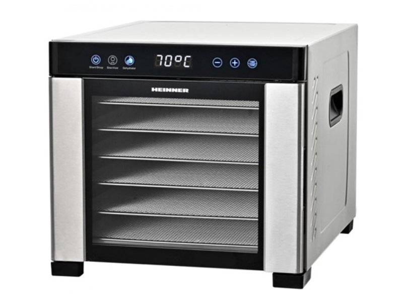 | Karakteristike | Naziv proizvoda Heinner PRODRY ESSENTIAL HFD-KD600SS Vrsta uređaja dehidrator za hranu i sušenje namirnica Snaga oko 650 W Broj posuda 6 posuda od nerđajućeg čelika Temperatura rada podesiva od 35 do 75 stepeni Tajmer od 30 minuta do 24 časa sa automatskim isključenjem Metalna mrežasta podloga za ravnomerno sušenje LED ekran i elektronska kontrola Konstrukcija od nerđajućeg čelika za dugotrajnost i jednostavno odrzavanje |