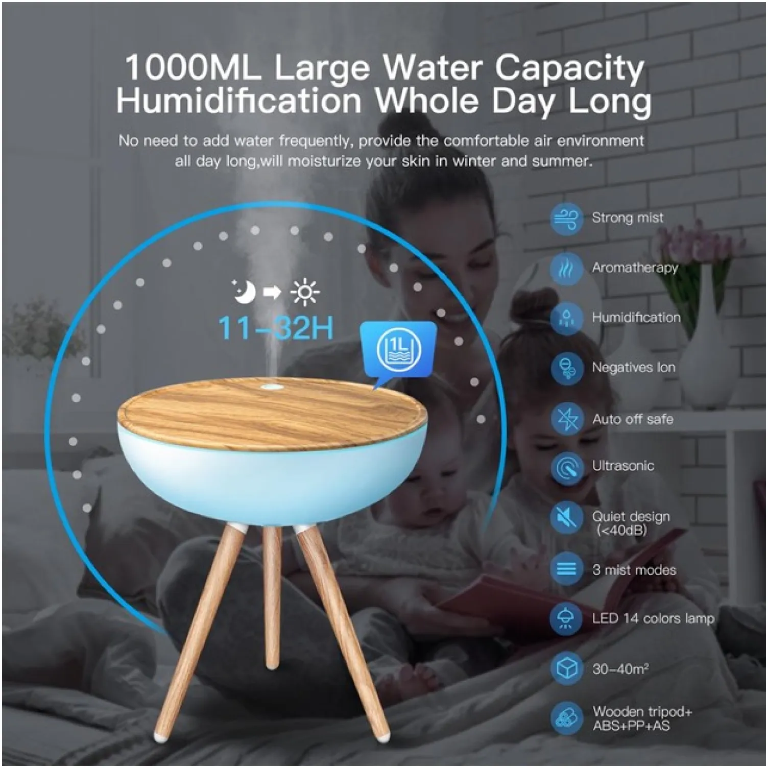 MOYE osveživač vazduha predstavlja funkcionalni i estetski dodatak za kancelariju ili kućne prostorije. Moderni dizajn sa pozadinskim osvetljenjem u 14 različitih režima ulepšaće svaki ambijent. Aromatični osveživač vazduha funkcioniše dodavanjem eteričnih ulja. Napunite posudu hladnom vodom, sipajte par kapi ulja i pritisnite dugme. Osveživač će istog trenutka početi da stvara hladnu i mirisnu vodenu paru. Zahvaljujući ultrazvučnoj tehnologiji ne dolazi do zagrevanja ulja, talasi rastavljaju esenciju na mikro čestice koje čuvaju izvorni miris i lekoviti
