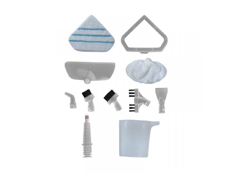 Od dodataka ima Dodatak za prozore / odeću, manja i veća okrugla četka, četkica za fuge, dodatak za struganje, krpa za odeću / prozore, krpa od mikrovlakana, zakrivljena mlaznica, merna posuda