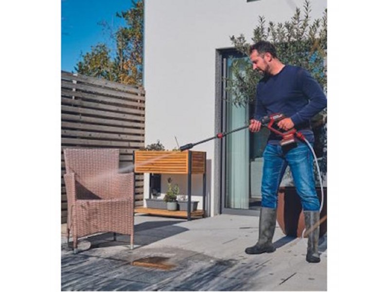 Einhell akumulatorksi perač pod visokim pritiskom HYPRESSO 18/24 Li obezbeđuje bežičnu fleksibilnost prilikom čišćenja i zalivanja bašte i terase.