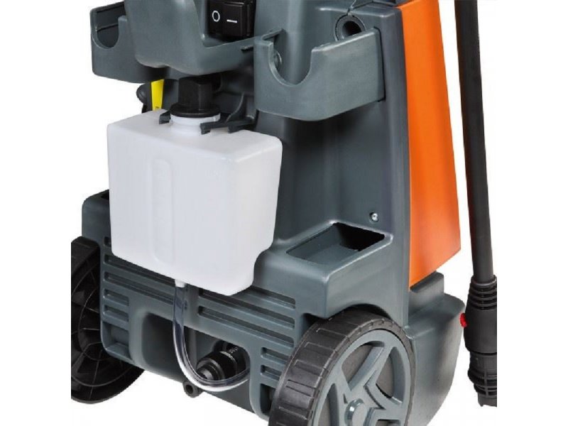 - Oleo Mac Perač pod pritiskom 1.75 kW PW 115 C poseduje pištolj sa zaštitom i rezervoar za detrdžent kako bi olakšao rad.