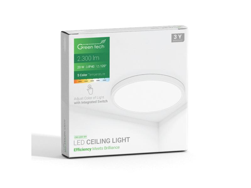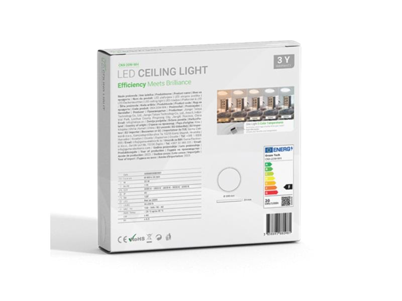 | Specifikacija | Snaga: 20 W Boja svetlosti: 5 CCT 3000K-3500K-4000K-5000K-6500K (odabir boje svetlosti pomoću prekidača na zadnjoj strani proizvoda) IP stepen zaštite: IP40 Napon: AC 100 - 265 V / 50 - 60 Hz Flux: 115 lm / W Ukupan tok svetlosti: 2300 lm Ugao svetlosti: 120° LED diode: Sanan 2835 Radna temperatura: od -25°C do 45°C Vek trajanja: 30.000 radnih sati CRI: ≥ 80 PF: ≥ 0.5 Sertifikati: CE, FCC, RoHS Materijal: Plastika Boja artikla: Bela Neto težina: 0,712 kg Bruto težina: 0,890 kg Dimenzije artikla: Ø 300 x 24 mm Dimenzije pakovanja: 305 x 305 x 30 mm |