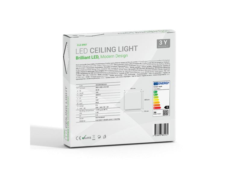 Specifikacija | Snaga: 36 W Boja svetlosti: 4000 K IP stepen zaštite: IP20 Napon: AC 220 - 240 V / 50 - 60 Hz Svetlosna efikasnost: 120 lm / W Ukupan tok svetlosti (Flux): 4320 lm Ugao svetlosti: 140° LED diode: MLS CRI ≥ 80 PF ≥ 0.5 Radna temperatura: od - 5°C do 85°C Vek trajanja: 2 godine Sertifikati: CE, RoHS Materijal: Metalna baza + akrilni poklopac + metalni prsten Boja artikla: Crna + bela Neto težina: 1,580 kg Bruto težina: 2,008 kg Dimenzije artikla: 485 x 485 x 55 mm Dimenzije pakovanja: 500 x 500 x 70 mm |