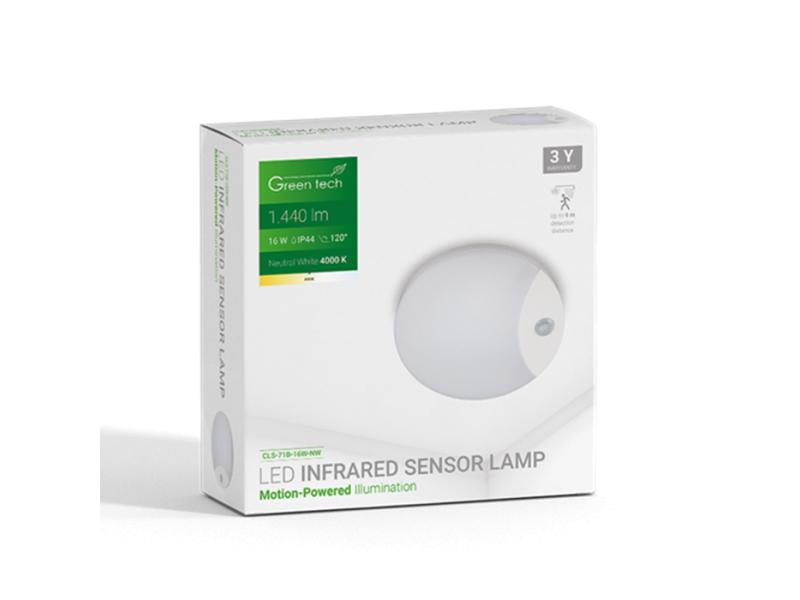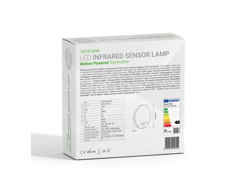 | Specifikacija | Snaga: 16 W Boja svetlosti: 4000 K IP stepen zaštite: IP44 Napon: AC 220 - 240 V / 50 - 60 Hz Flux: 1440 lm Svetlosna efikasnost: 90 lm / W Ugao svetlosti: 120° Zidna montaža 1,8 - 2,5 m + zidna montaža 2,2 - 4 m Infracrveni senzor pokreta Raspon detekcije: 160° / 360° Vreme (min / max): 10 sekundi / 5 minuta Domet detekcije: max 9 metara / 6 m (zid / zid) Radna temperatura: -20°C do 40°C Vek trajanja: 5 godina Sertifikati: CE, RoHS Materijal: Plastika Boja artikla: Bela Neto težina: 0,490 kg Bruto težina: 0,610 kg Dimenzije artikla: Ø 250 x 49 mm Dimenzije pakovanja: 256 x 256 x 63 mm |