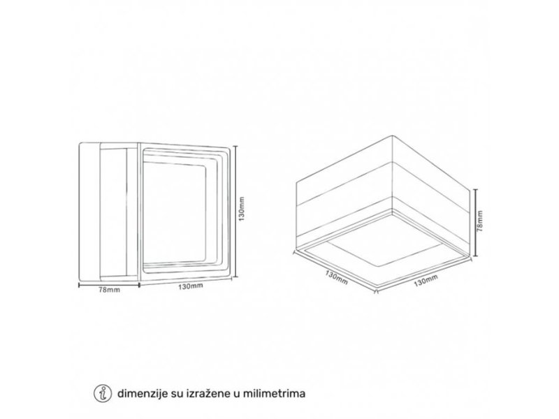 Dimenzije: 130 x 130 mm; h - 78mm