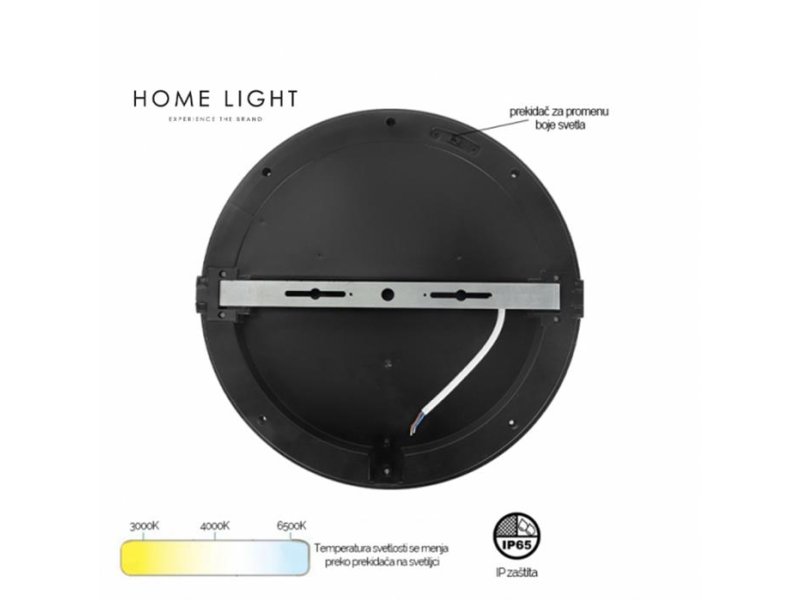 LED plafonska svetiljka u sivoj boji, snage 30 W sa mogućnošću izbora boje svetla putem prekidača. Osim što je pogodna za korišćenje kao unutrašnja rasveta (u hodnicima, dnevnim sobama, trpezarijama, poslovnom prostoru), ova lampa zahvaljujući visokoj IP65 i IK08 zaštiti može se koristiti i u težim unutrašnjim ili spoljašnim uslovima, na mestima koji se izloženi vlagi, vodi, prašini (kupatila, autoperionice, perionice, garaže, podrumi).
