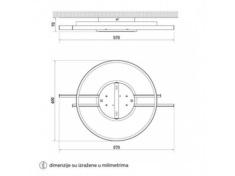Dimenzije: Ø 570 x 400 mm; h - 70 mm