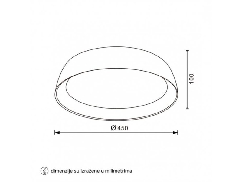 | Specifikacija | Tip proizvoda: LED plafonjera Model: VESTA 684 Nazivni napon: 220-240V AC / 50/60Hz Nazivna snaga: 40 W Temperatura boje svetlosti: 3000K ili 4000K (opciono) Izvor svetlosti: LED Boja proizvoda: Crna Materijal: Aluminijum/PC Dimenzije: Ø 450 mm; h-100 mm Način montaže: Nadgradna Temperatura okruženja: -15°C do +45°C Prosečan radni vek: 30 000 h na 25° C Energetska efikasnost: A++ Stepen električne zaštite: Klasa I Potrošnja električne energije: 40 kWh / 1000h |