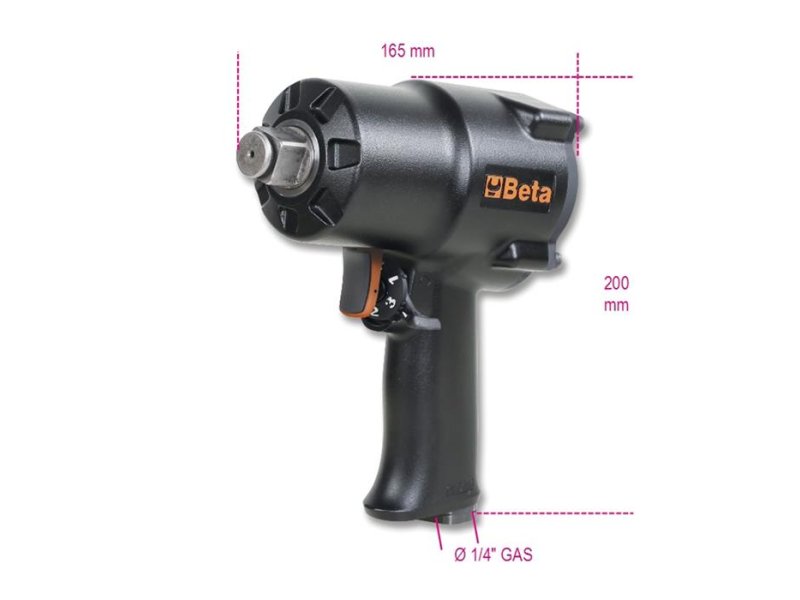 | Karakteristike | Prihvat: 3/4″ Slobodna brzina: 4800 o/min Max. obrtni moment: 1600 Nm Radni pritisak: 6.2 bar Potrošnja vazduha: 175 l/min Kapacitet zavrtnjeva Cl 8,8 M27 / 41 mm Kapacitet zavrtnjeva Cl 12,9 M24 / 36 mm Ulaz za vazduh (GAS): 3/8″ |